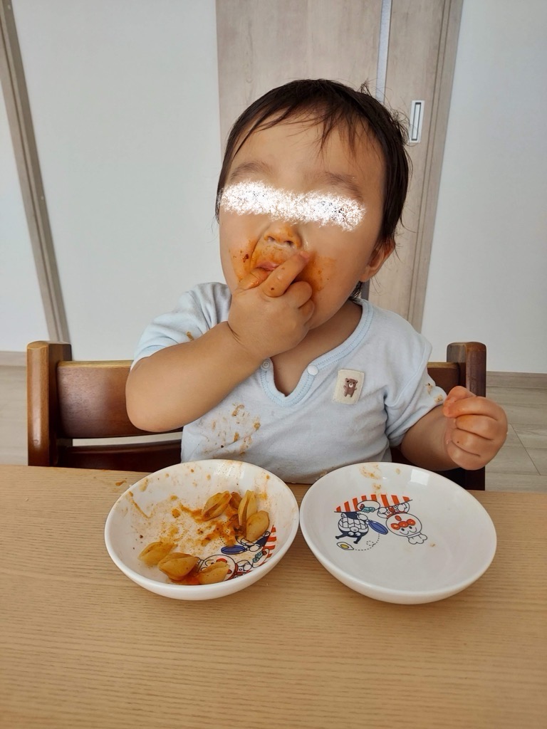 なので、お行儀が悪そうに見えたり、汚らしく見えても、これから食事をきちんと食べられるようになるための練習段階と捉えて、出来るだけ手づかみ食べを経験させてあげるのが大切です。